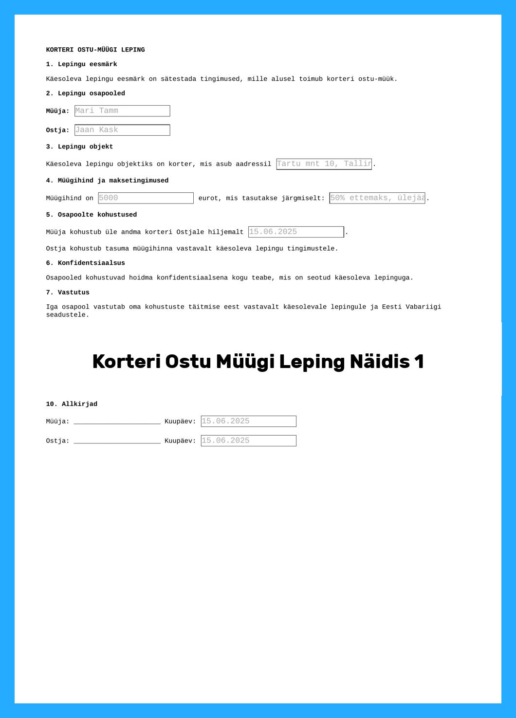 Korteri Ostu Müügi Leping Näidis